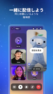 ボイス、ビデオ、テキストチャットを通じて、あなたの個性を最大限に表現してください。オリジナルのカスタム絵文字やダイナミックなスタンプ、効果音を駆使し、アバターやステータスで自分らしさを際立たせ、会話に彩りを加えます。高品質で低遅延のストリーミング機能は、まるで同じソファに座っているかのような臨場感を実現し、友人とのゲームや番組鑑賞、写真共有、共同作業の時間をより豊かな体験へと昇華させます。招待不要で気軽にチャットに参加できるため、ゲームの前後や最中でも、シームレスに仲間との繋がりを保てます。
