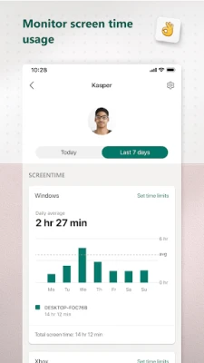 お子様がデジタルデバイスとの健全な関係を築けるよう、「Microsoft Family Safety」は使用時間の管理にも力を発揮します。Android、Xbox、Windowsなどの様々なプラットフォームで、特定のアプリやゲームの利用時間を設定したり、デバイス自体の利用時間を制限したりすることで、バランスの取れたデジタルライフをサポートします。さらに、毎週お届けする活動記録レポートにより、ご家族のオンラインでの行動パターンを深く理解し、それをもとに建設的な対話を始めるきっかけを提供します。
