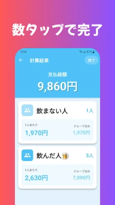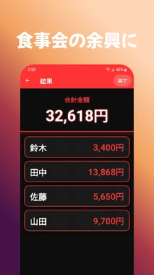 飲み会やイベントの精算、まだ手計算で消耗していませんか?このアプリが、複雑な割り勘を瞬時に、そして公平に解決します。幹事さんの手間を大幅に軽減し、みんなが気持ちよく支払いできるスマートな体験を提供。面倒な計算はもう過去のものです。