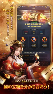 国のために尽くした功績は決して無駄になりません。領地の開拓や城の発展、そして戦功に応じて、最大10倍もの報奨が還元され、すべての努力が確実に実を結びます。現在、サービスの開始を記念し、戦績ランキングの頂点に立ったプレイヤーには、現物の金インゴットや限定称号など、豪華な褒賞が贈られる「黄金城争覇戦」が開催予定です。様々な特別なギフトコードも用意されており、あなたの覇業を力強く後押しします。さあ、英雄たちよ、最強三国で歴史に名を刻み、天下統一の夢を掴み取りましょう。